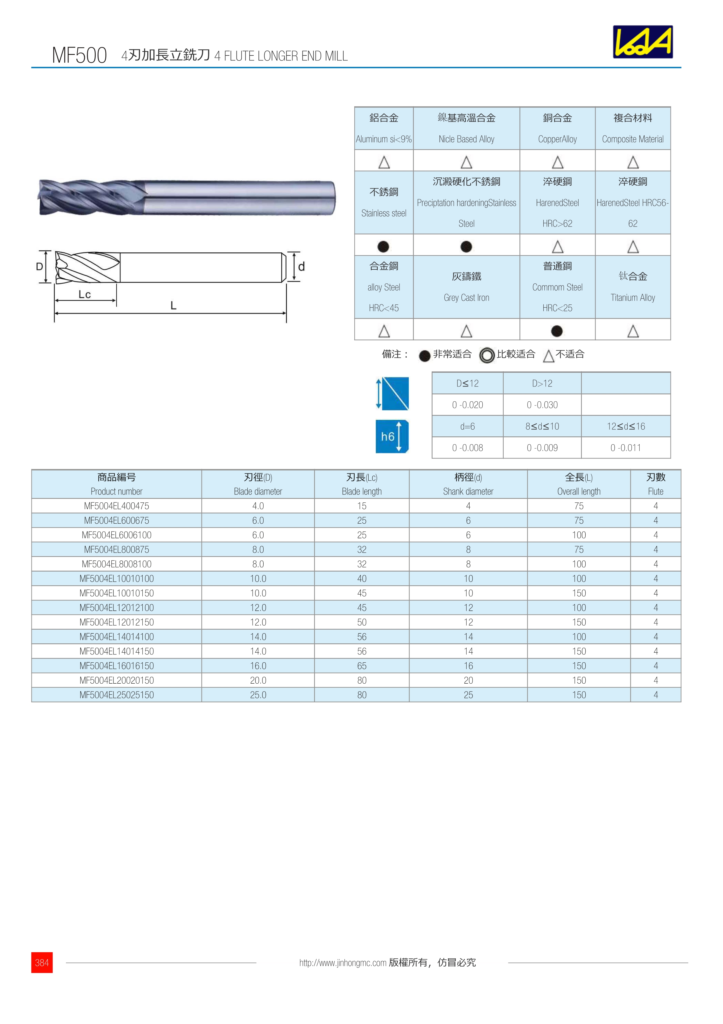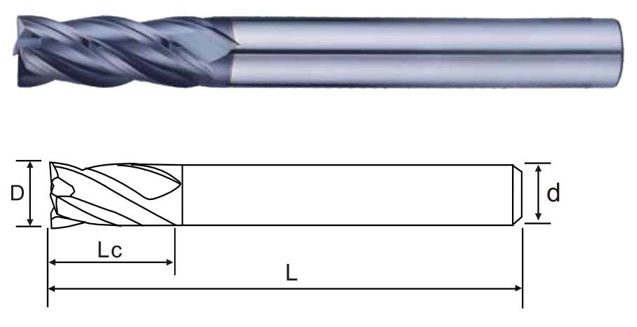 商品編號 Product number | 刃徑(D) Blade diameter | 刃長(Lc) Blade length | 柄徑(d) Shank diameter | 全長(L) Overall length | 刃數(shù) Flute |