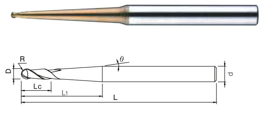 商品編號 Product number | 半徑(R) Radius of R | 刃徑(D) Blade diameter | 刃長(Lc) Blade length | 柄徑(d) Shank diameter | 全長(L) Overall length | 有效長(L1) Effective long | 刃數(shù) Flute |