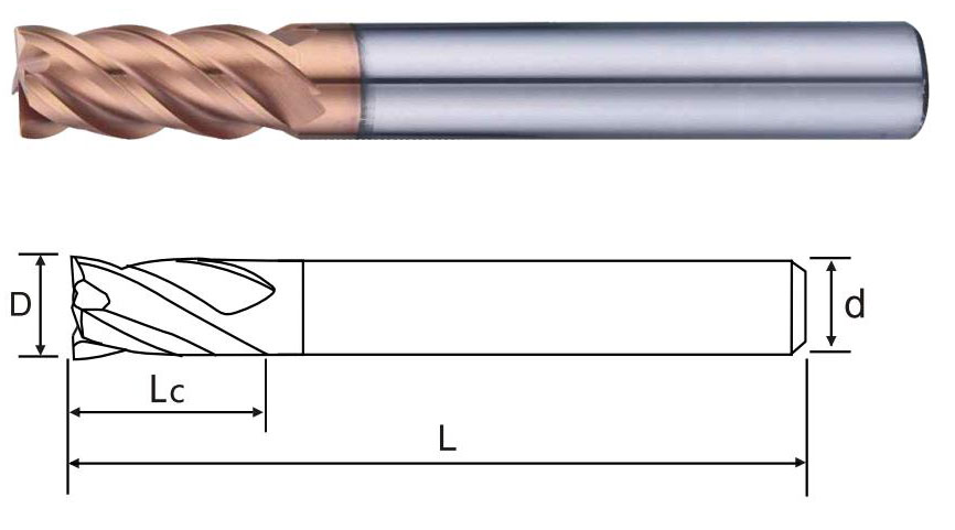 商品編號 Product number | 刃徑(D) Blade diameter | 刃長(Lc) Blade length | 柄徑(d) Shank diameter | 全長(L) Overall length | 刃數(shù) Flute |