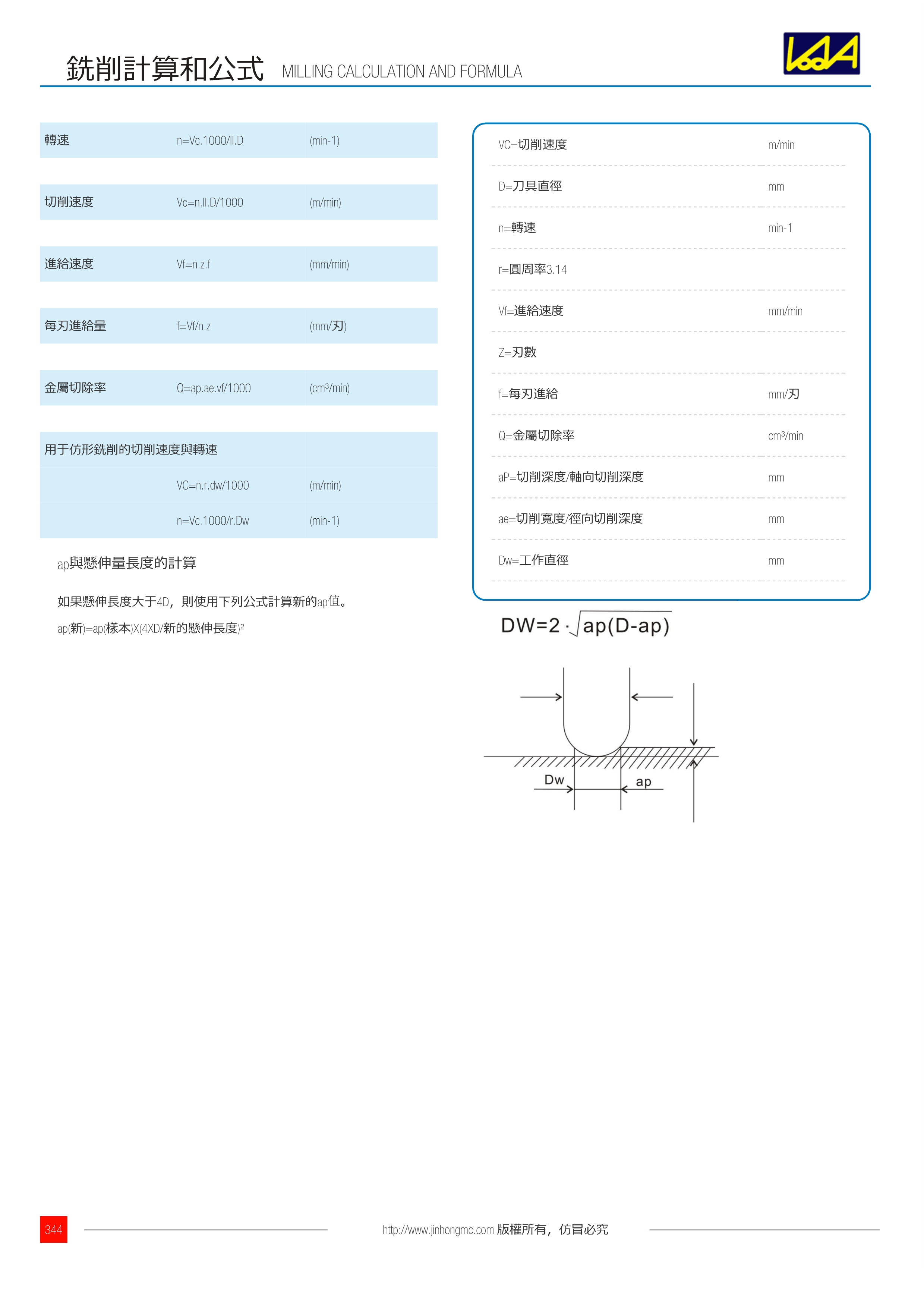 訂購:p98 銑削計算和公式